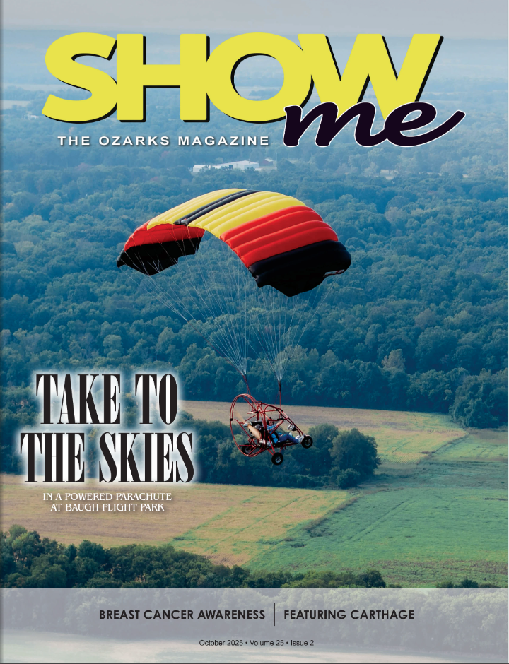 High in the sky, powered parachutes soar upon liftoff at Baugh Flight Park, located about 20 minutes southeast of Carthage, Missouri. For nearly three decades, powered parachute pilots have taken off and landed from these fields, and future pilots have learned how to fly these aircraft.