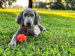 Three-month-old Creed is a silver Weimaraner that lives with Brian Price. Creed is highly intelligent and loves to play with his toy hedgehog and toy duck. Brian tells us that though the breed has a reputation for being active, Creed is very calm and chill. He also loves to snuggle and cuddle, and he loves playing with the other dogs in the family.
