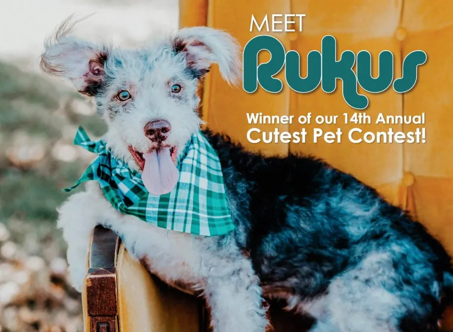 The 14th Annual Cutest Pet Contest featured 177 entries with winners including Rukus (1st place), Jasper the bloodhound (2nd place), and Maggie Jo Moo Cow the English bulldog (3rd place and Facebook Fan Favorite). Entry fees benefit the Joplin Humane Society and Faithful Friends Animal Advocates.