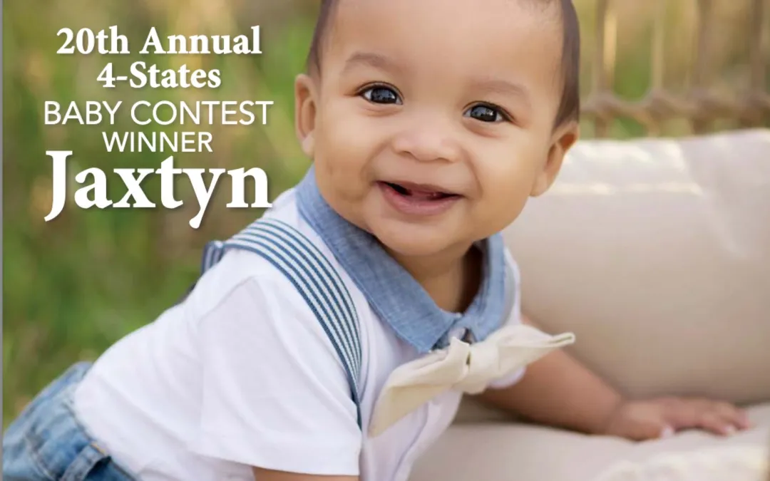 Seven-month-old Jaxtyn is the winner of our 20th Cutest Baby Contest. His radiant smile and big personality charmed the judges. With an older sister and four older brothers, Jaxtyn is already a people person who loves to have his picture taken. Mom and Dad, Felisha and Lee, say Jaxtyn loves his toys and watching Mickey Mouse Clubhouse. He is sitting up, but he’s not yet crawling; however, he loves to roll everywhere to get what he wants. One of his favorite things is falling asleep in the swings at the park.