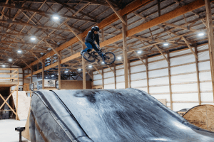 Rooted Action Park showcases distinct differences that help set it apart. He says, “Our facility offers some unique features, like the only indoor pump track (doesn’t require pedaling) in the region. We also have the only airbags (provides safety for landings) in the region that are open to the public.“