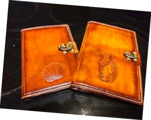 Tooling is putting a pattern or picture on the leather itself. “It’s also used to create wet molded pieces like the bowls I make. And chrome tanned leather is used when I create handbags and earrings. Other results have included Bible covers, belts and portfolios.”
