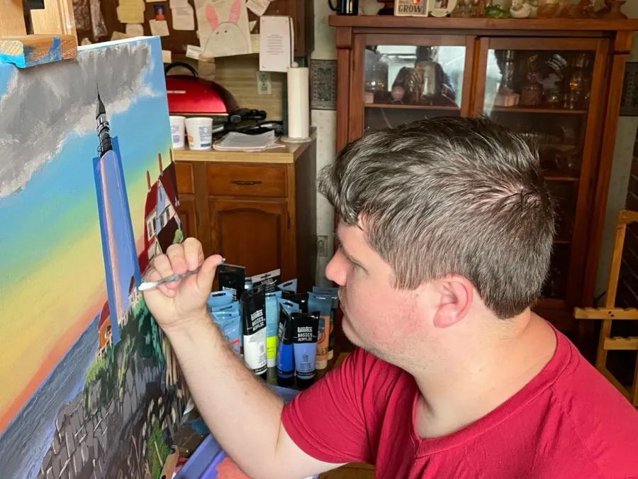Paul Walden from Pittsburg, Kansas, launched his art business Paul Walden Creations after having his first artist reception, painting iconic landmarks in acrylics since discovering art as a communication tool at age three when he was non-verbal with autism. Mentored by Kansas City artist Wes Benson since 2017, Paul joins the ranks of creative geniuses like Van Gogh and Einstein who were also on the autism spectrum.