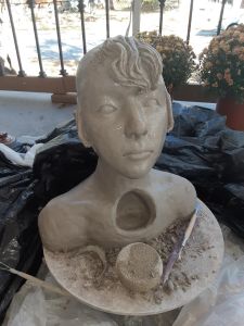 “I’m a firm believer in, ‘waste not, want not,’” she said. “I really enjoy repurposing discarded objects like clothes, old sculptures and weird vintage fixtures to resurrect them into new forms. When I see used clothes or items, I don’t just look at them for their intended purposes … I think of them as ingredients to what I am cooking up artistically. If I find a shirt and have fallen in love with the fabric, I will buy it and rip it up for my vision. I like to take old fixtures or figurines and make molds from them to create something new. I volunteer at the Seneca Food Pantry and Thrift Store, and sometimes things are unsellable, and it so happens to be something that I want to use, so it goes to my artistic creations.”