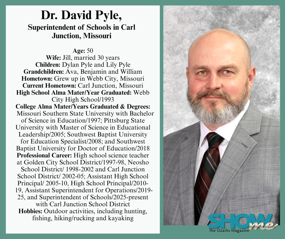 In considering what makes him the right person to be superintendent of schools, Dr. Pyle says, “I’m uniquely qualified and positioned for this role. In addition to being part of the district for 23 years, I’ve lived in Carl Junction for 28 years. I’ve developed long-standing and well-established relationships with school staff and members of our community.”