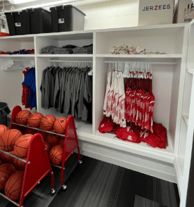 Phillip Wilson donated his time and skill to build the storage closet with custom built-ins for the uniforms, travel gear and other items that needed their own space in both rooms. And both rooms were completed just in time for the students’ return to school after their holiday break.