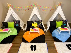 What might surprise you is these parties are not just for kids. Slumber Soiree offers adult sleepovers for bridal showers, date nights or family gatherings. They also offer many add-ons such as popcorn machine and candy cart rentals, balloon garlands, personalized slumber party favors and more.