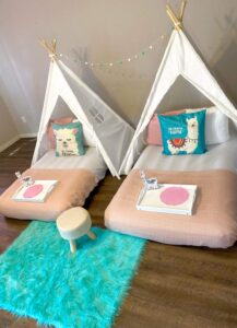 Slumber Soiree opened in February and the duo has been busy ever since. “As a mom of four, I know how stressful planning a party is,” said Skye. “I was constantly seeing other moms post online looking for affordable venue recommendations for their kids, so I started looking around for a new fun party option to bring to our area. I figured why stress over finding a venue when we can bring everything right to you in the comfort of your own home. As soon as this new idea popped in my head, I messaged my good friend Brittany Borries, who is known for throwing fun over-the-top birthday parties and asked her to join me on this new adventure, and to my surprise, she said yes! So, here we are. Some have even called us the dream team!”
