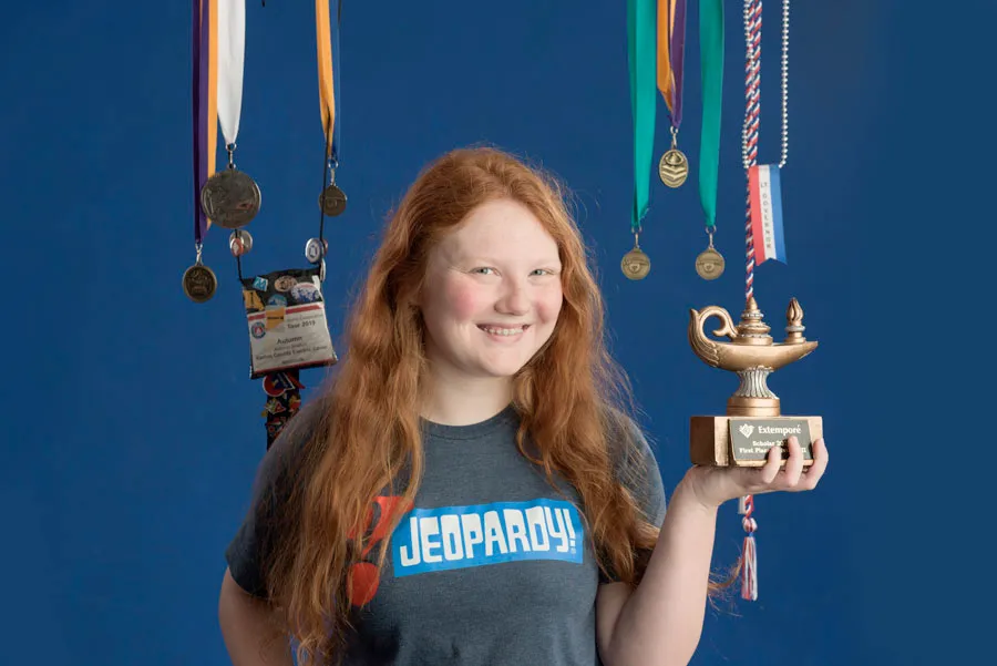 “I’ve watched Jeopardy! with my mom and grandmother for years,” recalled Shelton. “I fell in love with trivia and learning new things.” This led her to try out for the teen tournament by taking the online test. The only problem was Shelton was in the middle of a dinner theater during the scheduled test time. “I exited to the only quiet area, the bathroom, turned on my phone, and took the 50-question test there.