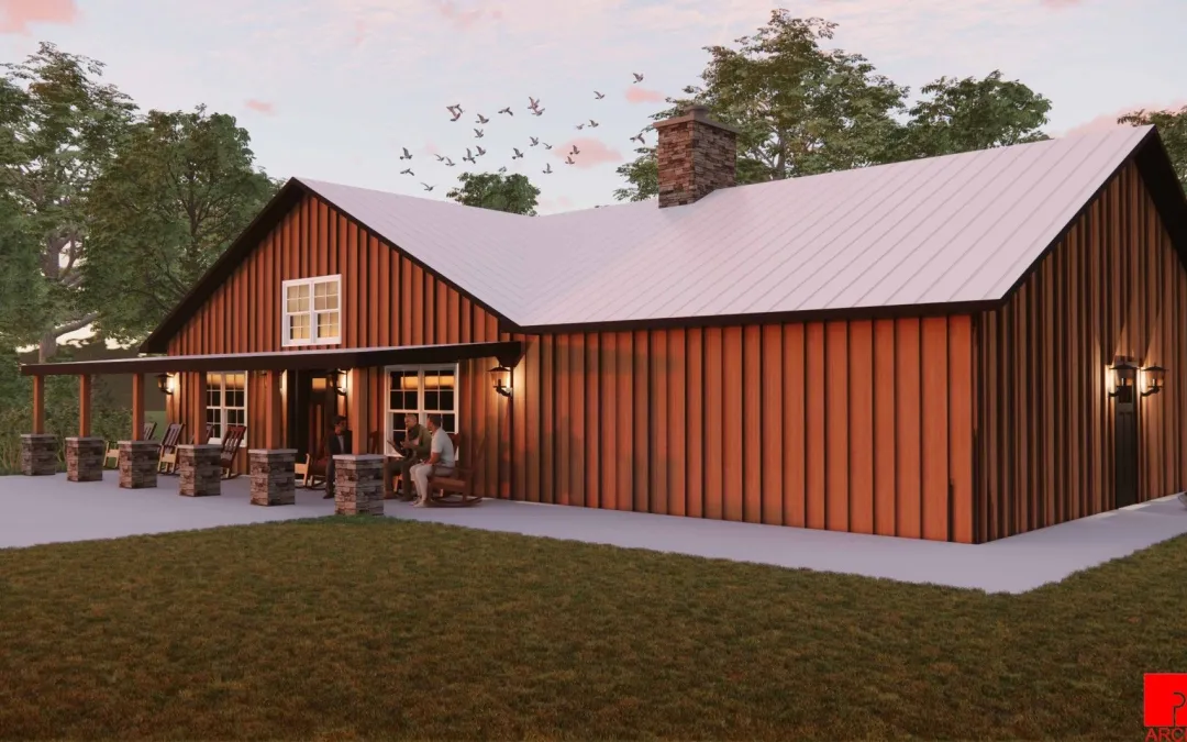 “There will be a large great room with high ceilings and a large fireplace in an open floorplan with a kitchen and dining area. At the east entrance there will be a locker room with 12 lockers for hunters and attendees to hang their gear and get out of their muddy clothes if needed.