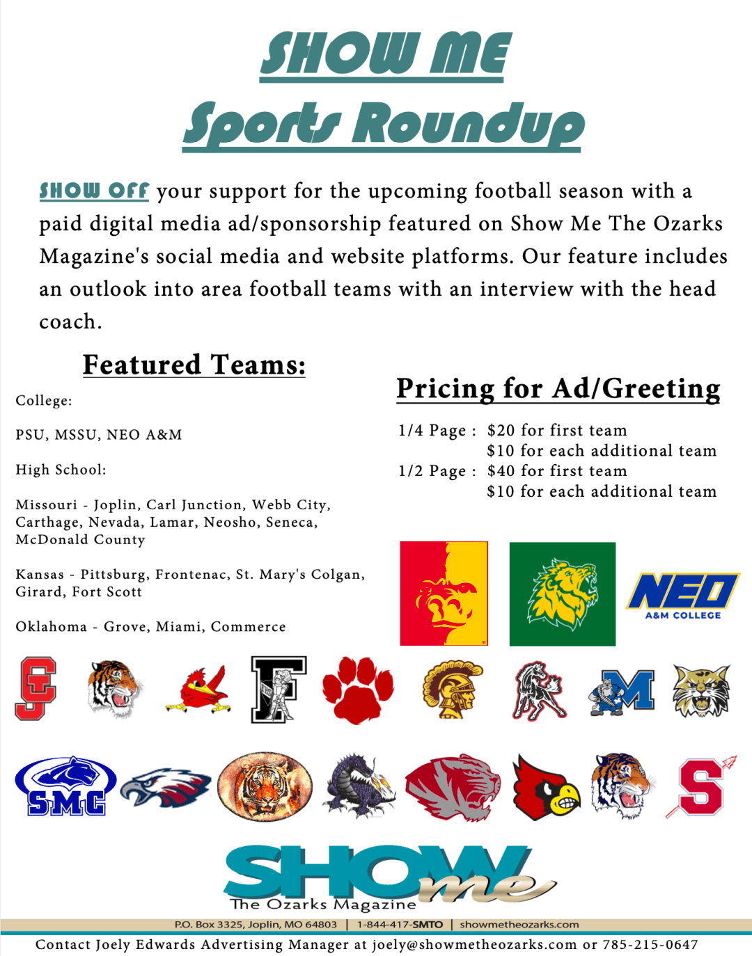 To purchase your team’s ad and for additional information, contact our advertising manager Joely Edwards at joely@showmetheozarks.com or 785-215-0647!