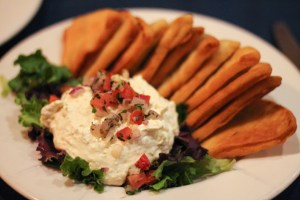 We started the evening with crab cakes and spicy feta dip. The crab cakes looked so good, the table next to us ordered them, too.