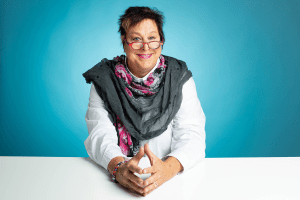 Drew encourages clients to wear clothes that make them feel good and let their personality shine. “Wear an outfit you love and feel comfortable in,” Drew adds “Accessories like glasses, jewelry or a scarf bring personality.” Drew believes authenticity is more important than being perfectly put together.