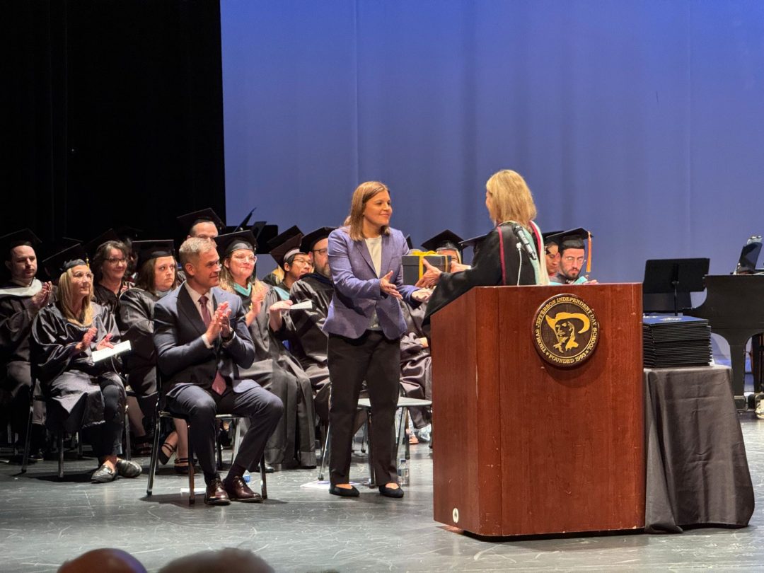 Angie Scott (’05) receives the Distinguished Alumni Award at TJ’s 2025 Commencement