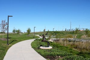 The walking trails at Campbell Parkway feature a north loop of .81 miles and a south loop of .51 miles. Visitors can easily access both for a combined trip of 1.32 in the sunshine and shade.