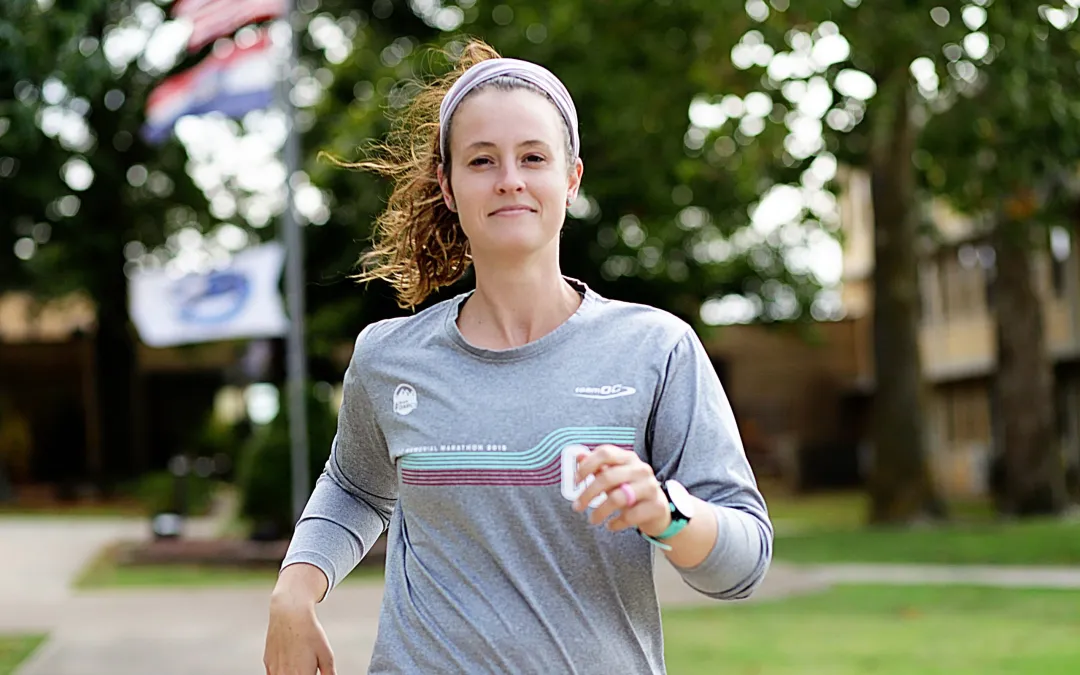 Stephanie Witcher is a busy wife, mother, college instructor, doctoral student, and marathon runner who uses running as her stress relief and “me time.” She started running to lose weight after her first pregnancy and now inspires others through programs like “Read, Run, Repeat” for high school students. Running also brings her close friendships and motivates her to balance life’s many demands.