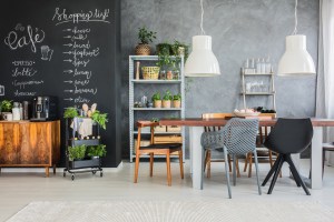 To create a larger area, paint the wall with chalkboard and magnet paint and add painted, inexpensive trim molding and frame the entire area to create a large message center. Add small baskets on the wall to hold homework assignments and label each basket with your children’s names.